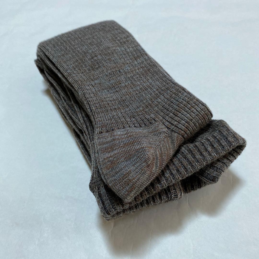 ウール混厚手ミックスリブタイツML グレーxモカミックス