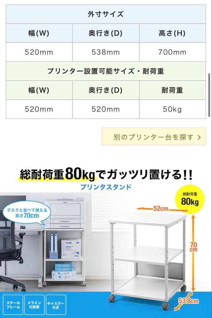 引取価格 プリンター台 レーザー インクジェット 対応 キャスター付 オフィス