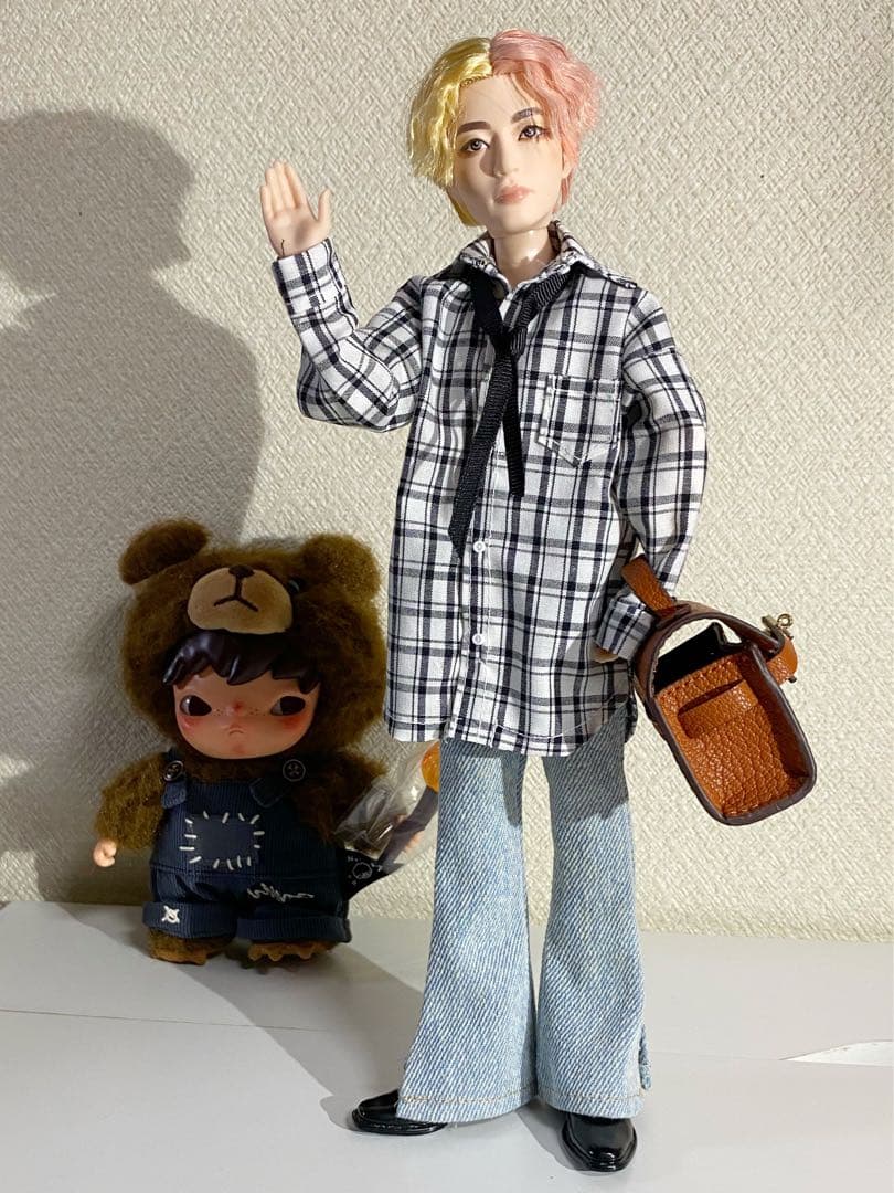 BTSマテルドール服★リボンタイ付きチェックシャツ