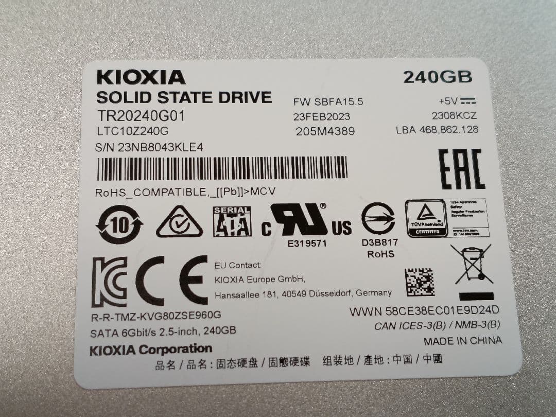 【価格見直し】新品同様KIOXIA EXCERIA 240GB SATA SSD