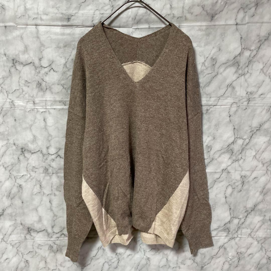 6983ジェナ エスパスメルヴェイユ ♡ウール混 Vネックニット バイカラー