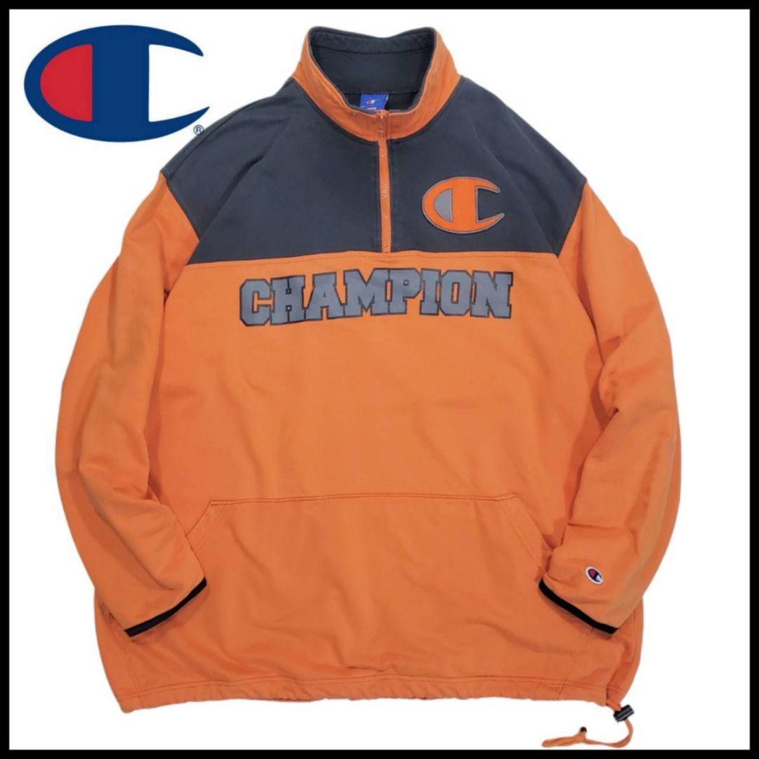 雑*寝様 4L/古着 Champion チャンピオン ハーフジップ スウェット
