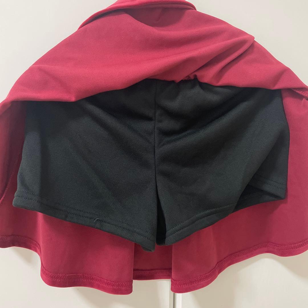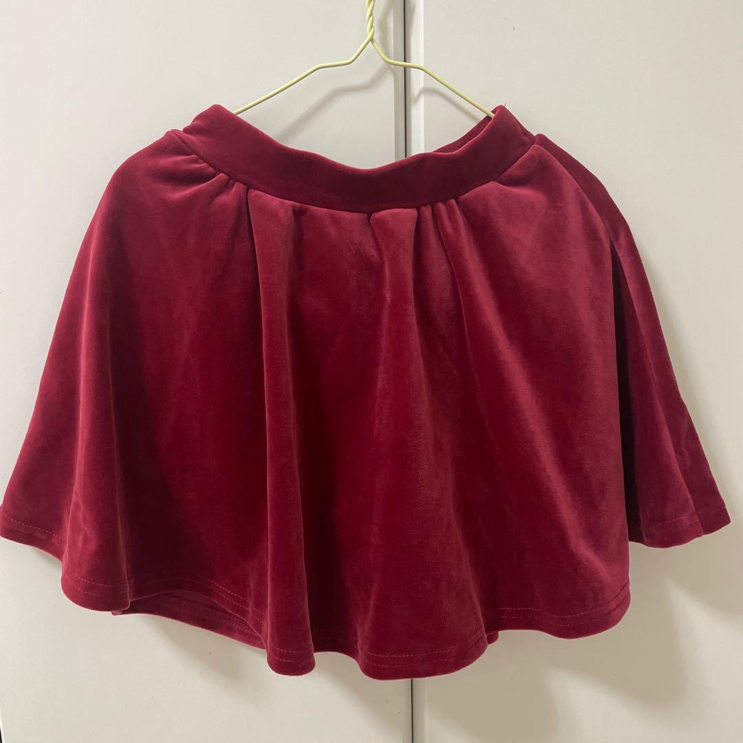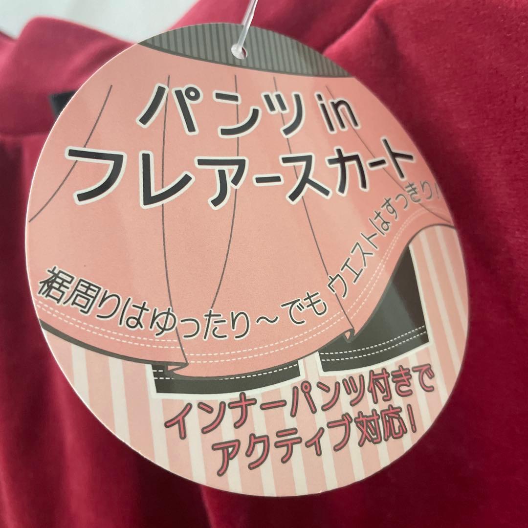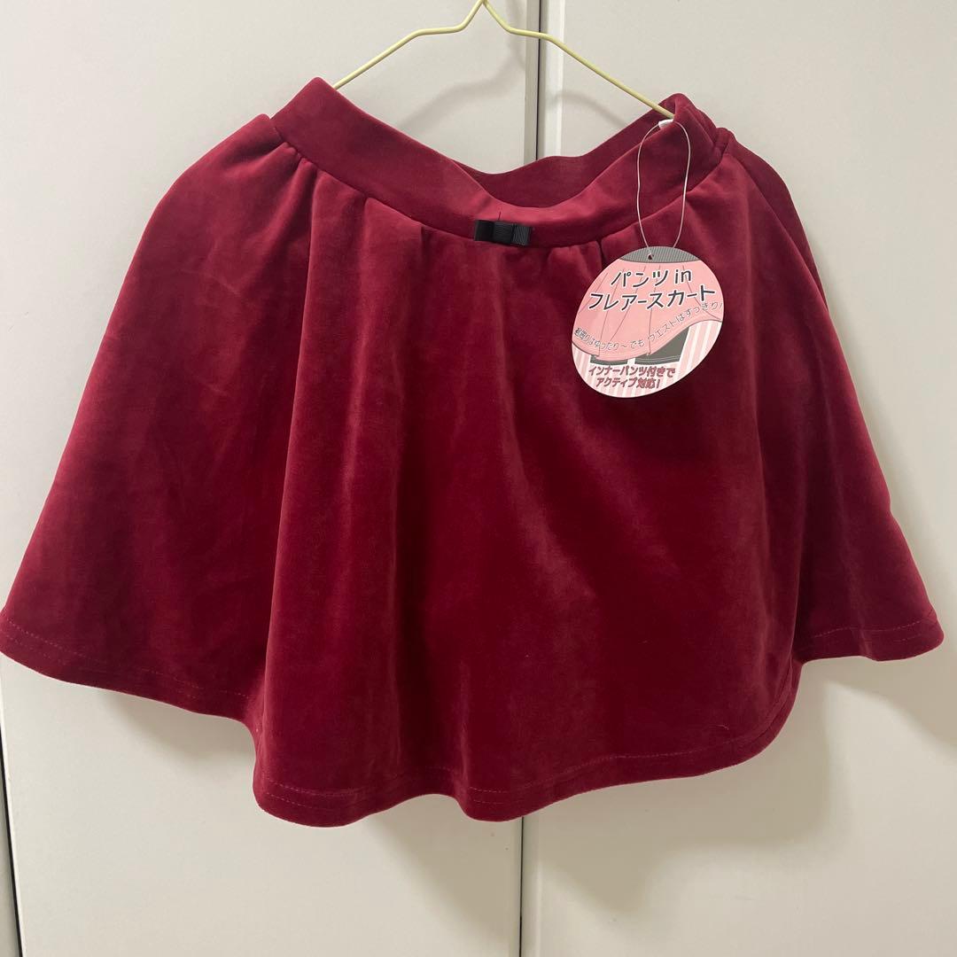 パンツinフレアースカート ワインレッド インナーパンツ付き ベロア 赤 裏起毛