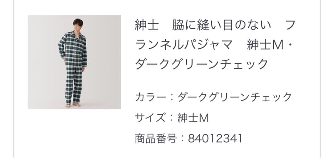 無印良品 紳士フランネルパジャマダークグリーンチェックM