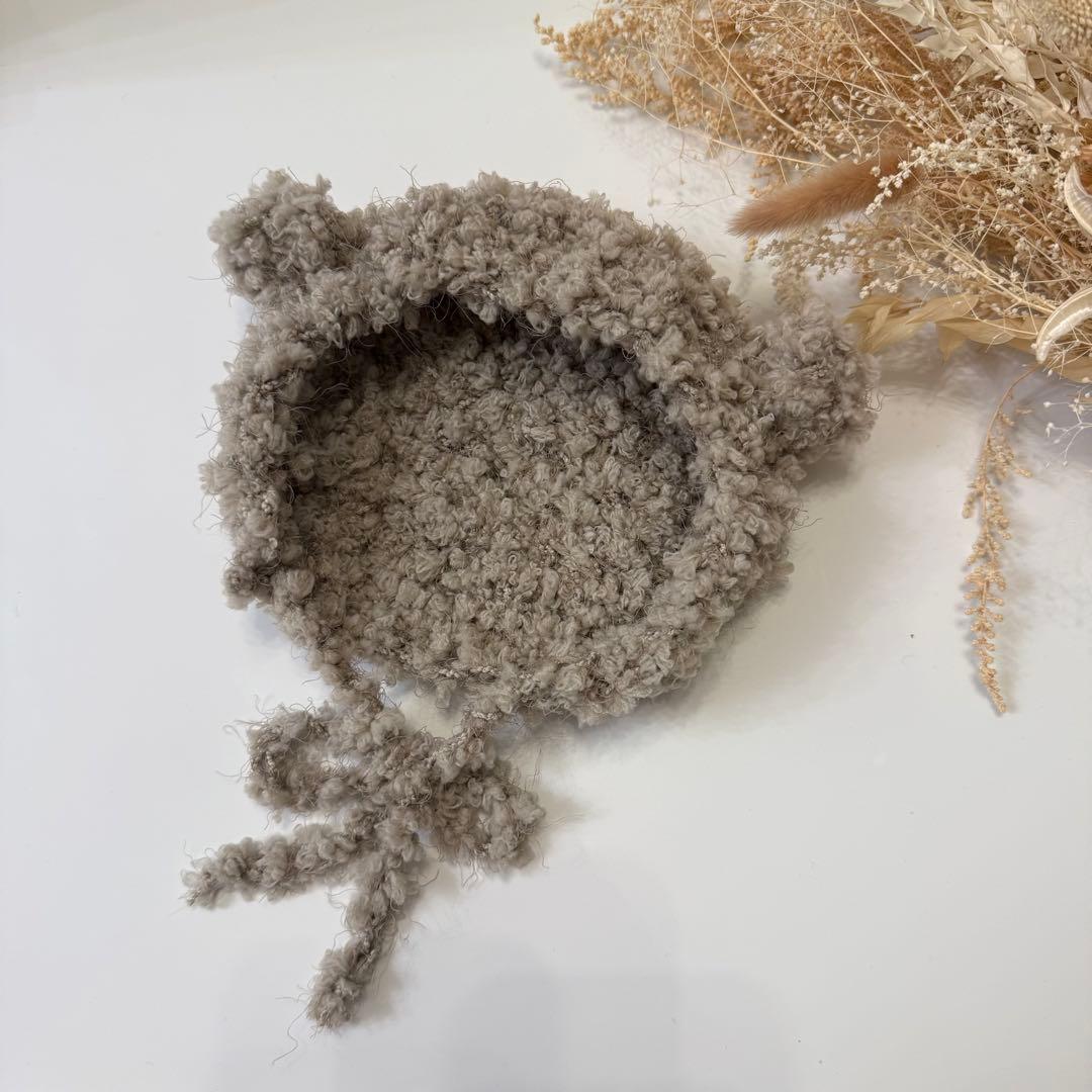 【ベビーボンネット】くま耳ボンネット(グレージュ)