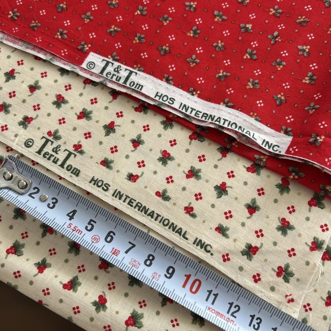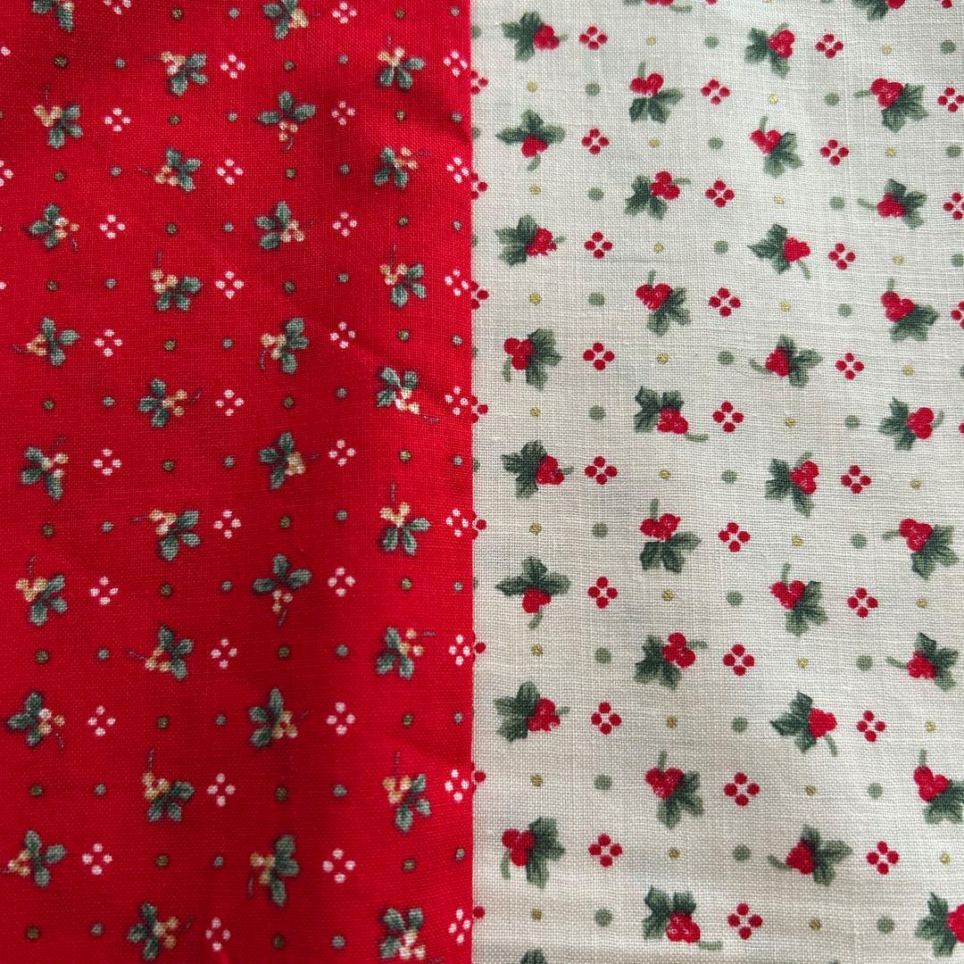 USAコットン クリスマスプリント生地 赤と白(オフホワイト) ヒイラギ
