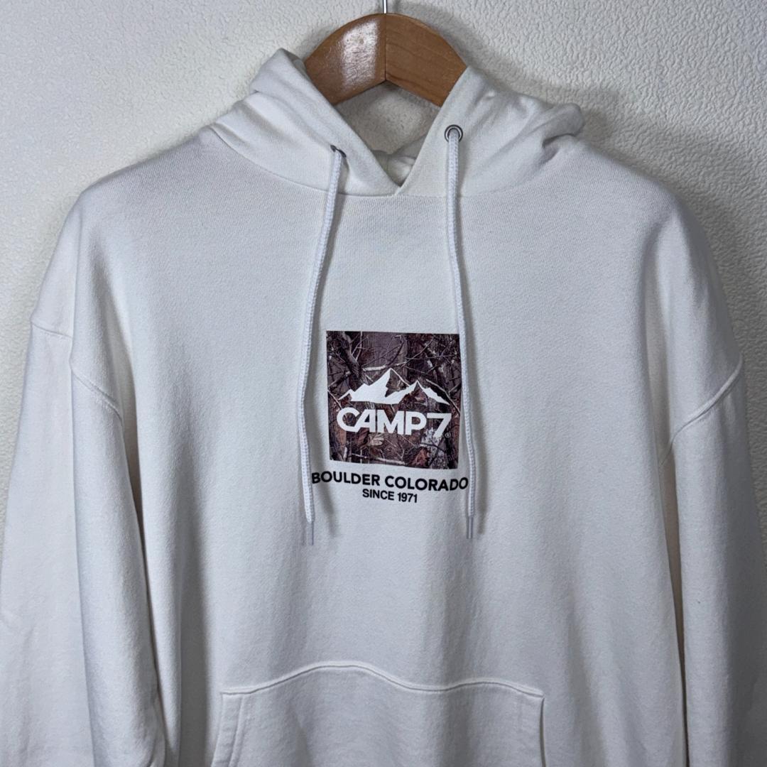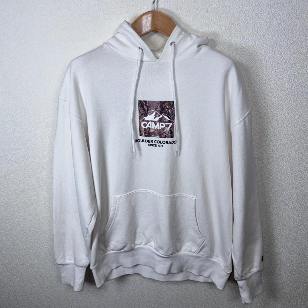 ★美品★ CAMP7 キャンプセブン ホワイト フード付きパーカー ロゴ 綿 L