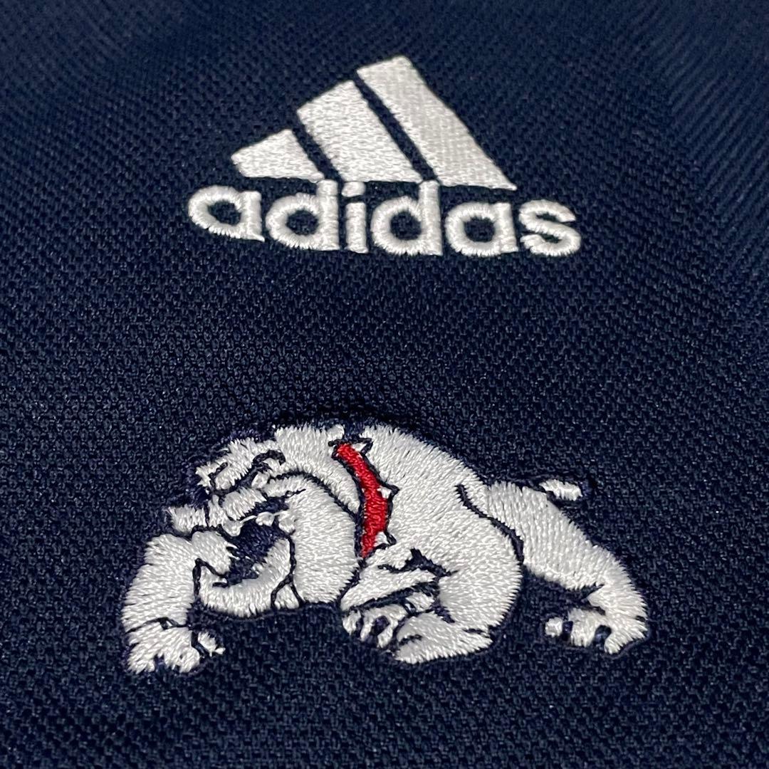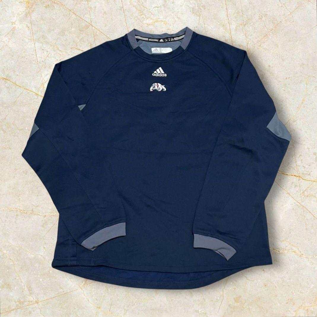 adidas 肉厚 プルオーバー US古着 刺繍ロゴ ブルドッグ カレッジ