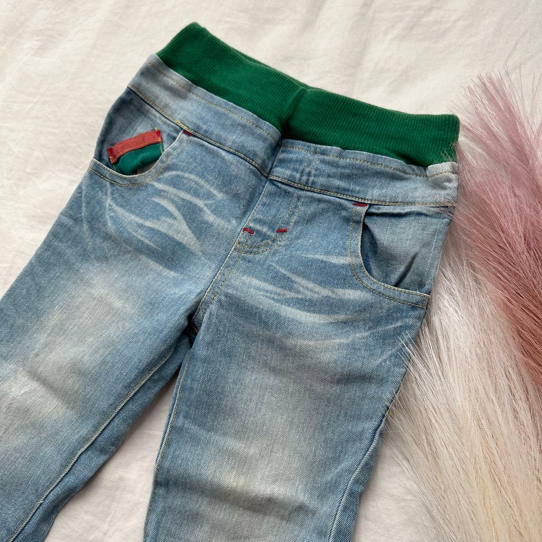 超美品birthdayデニムボトムス 90グリーンリブ 薄いジーパン