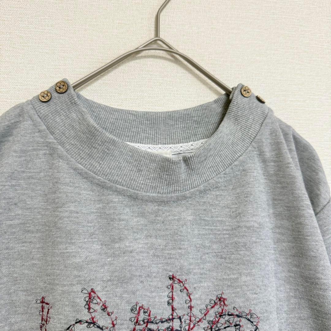 【セイタロウクロダ】ユニーク刺繍入りスウェット トレーナー 魚 長袖プルオーバー