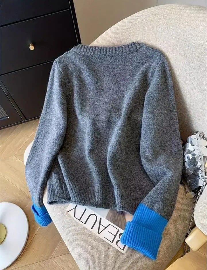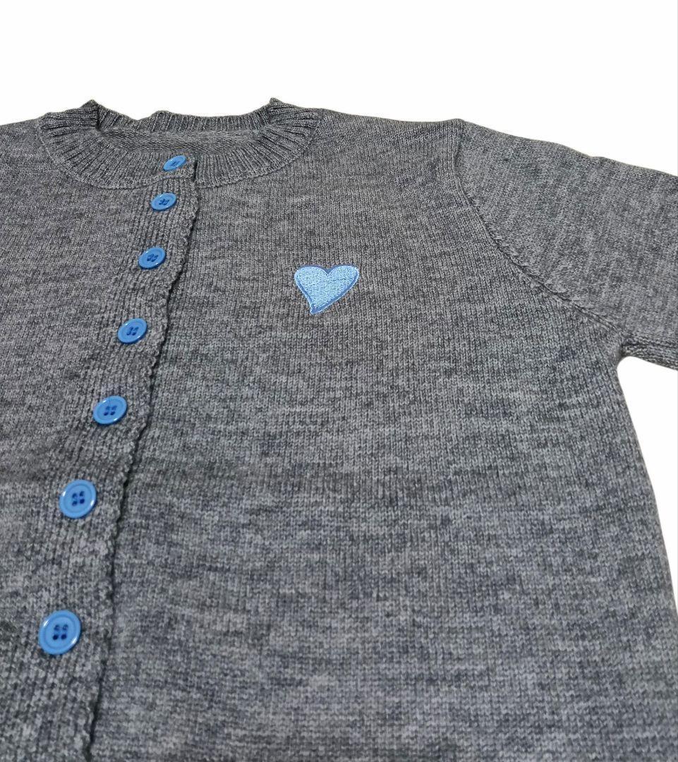 可愛い❤️U グレー/青のハート刺繍カーディガン XL お洒落❣️
