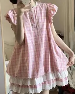 【Gleeful】新品未使用♡ノースリーブロングワンピース【L】異素材♡チェック