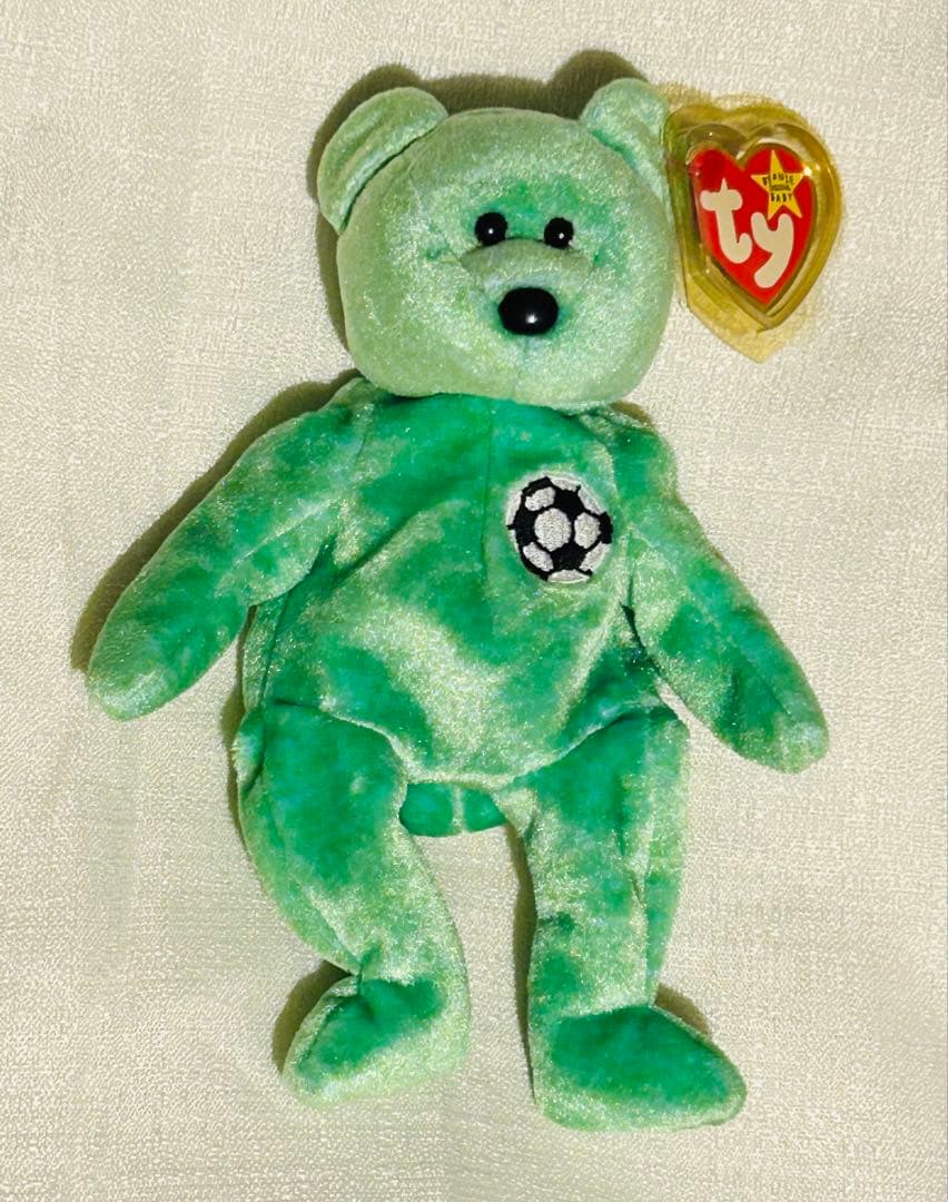 ビーニーベイビーズ「キックス (Kicks)」サッカーベアのぬいぐるみ 未使用