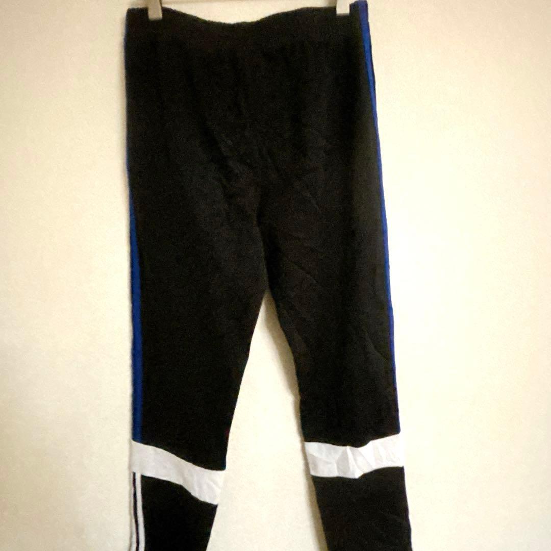 美品✨ adidas 【L】ストライプ ジャージパンツ 黒 青 アディダス