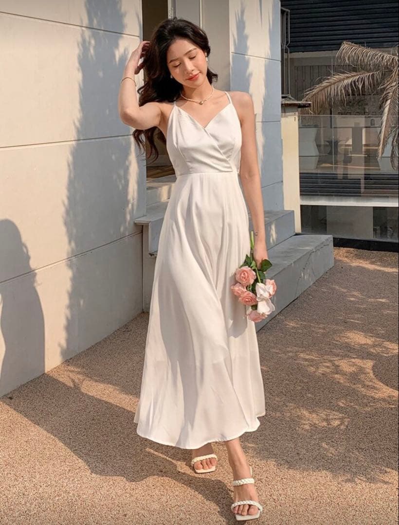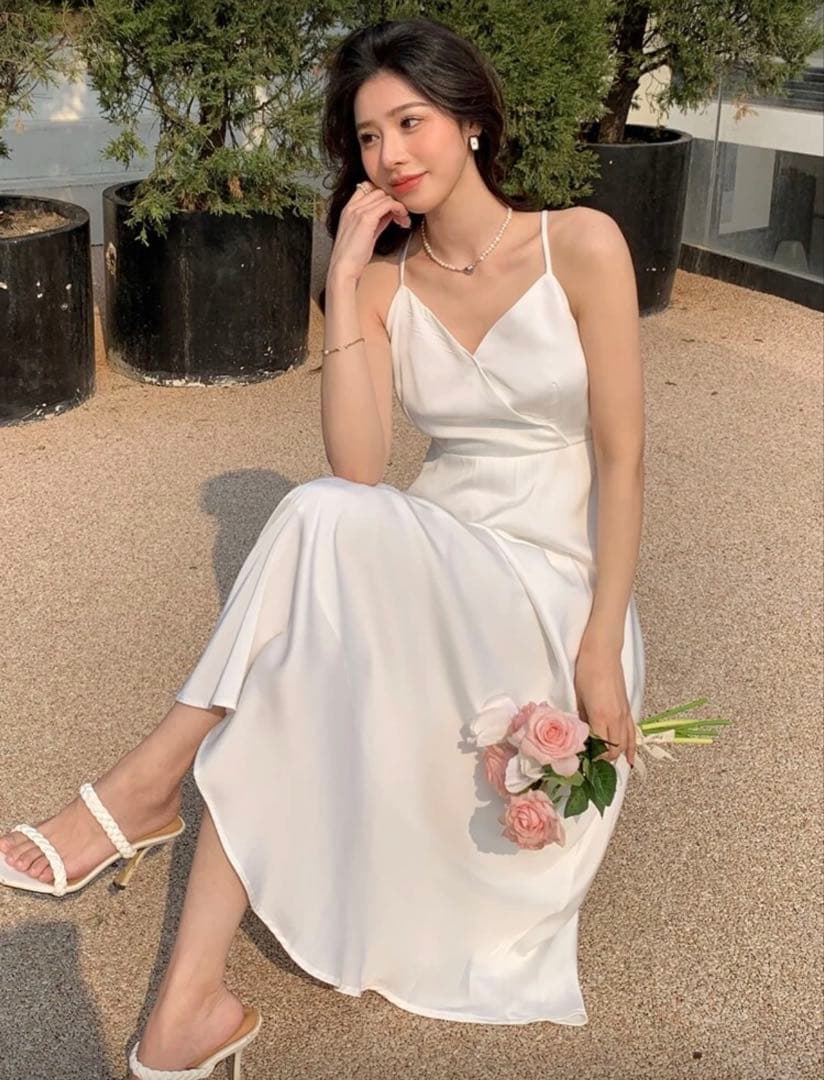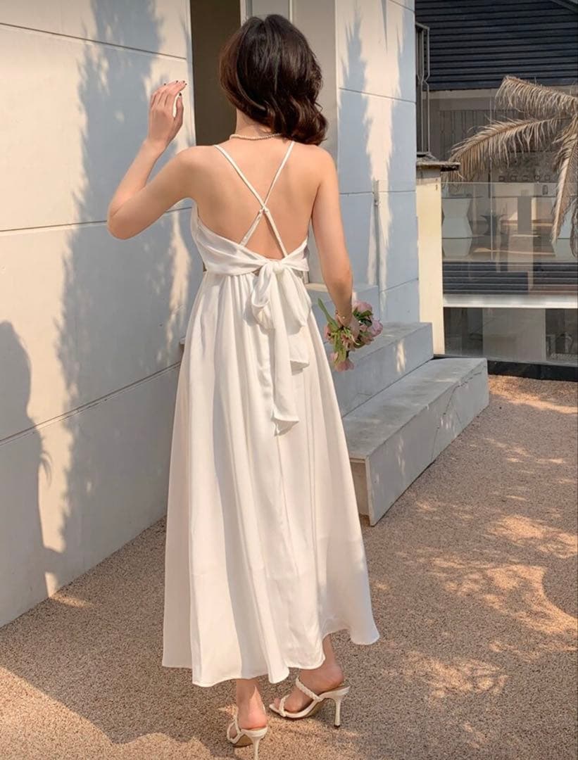 DAZY ソリッドボウバックキャミドレス 白 ワンピース