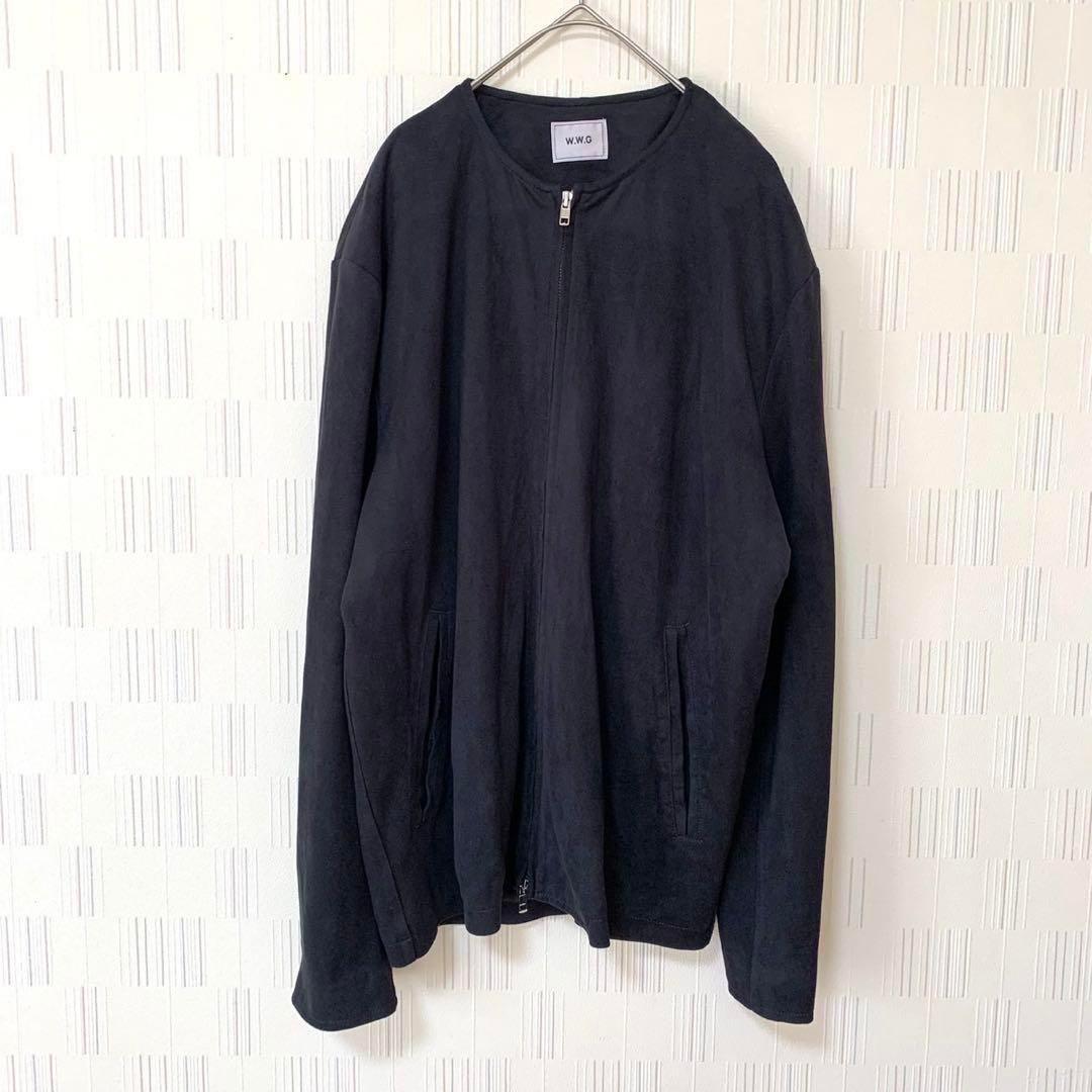 W.W.G ノーカラージャケット 秋冬アウター 薄手ベロア調 黒 M シンプル