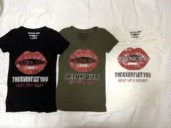ノーブランド口紅デザイン ラメ半袖Tシャツ 3枚セット