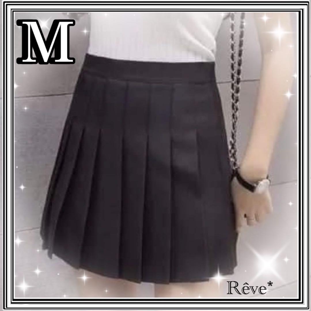 レディース プリーツスカート M ブラック 中高生 女子高生 衣装 可愛いf