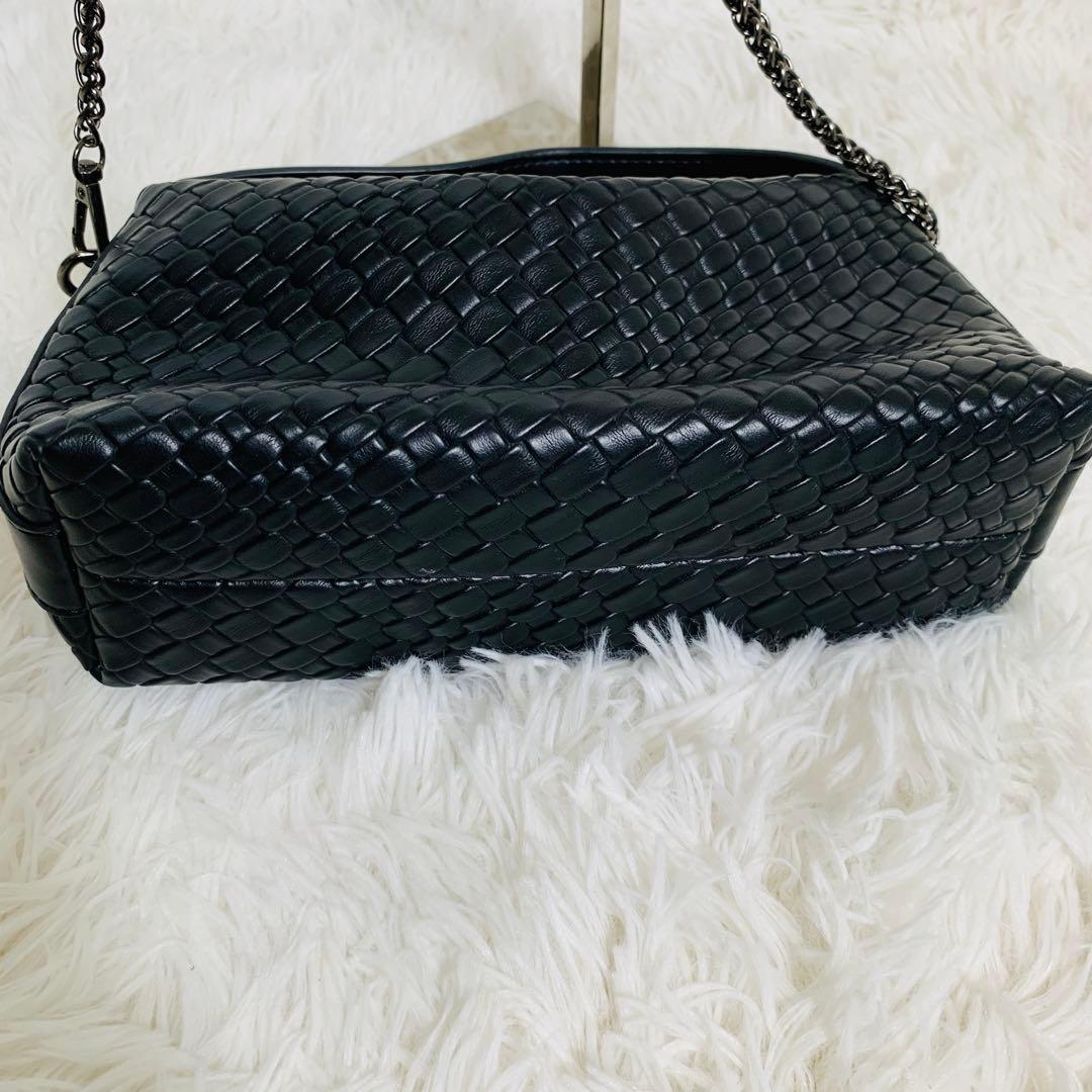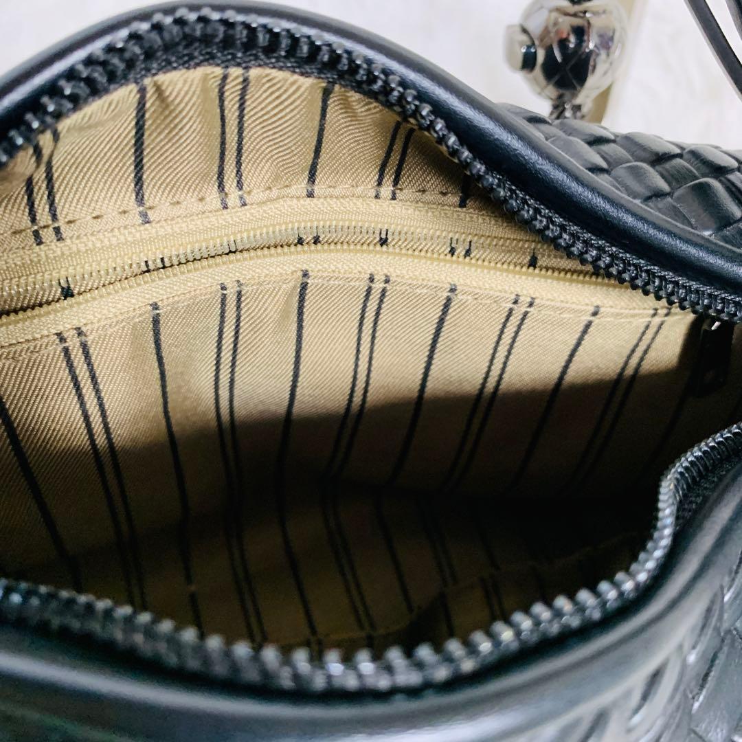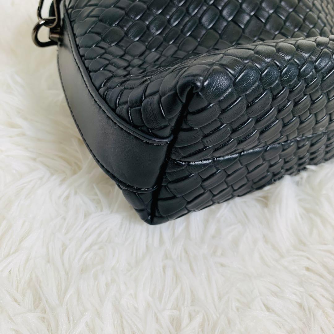 【美品】編み込み 2wayショルダーバッグ イントレチャート ブラック