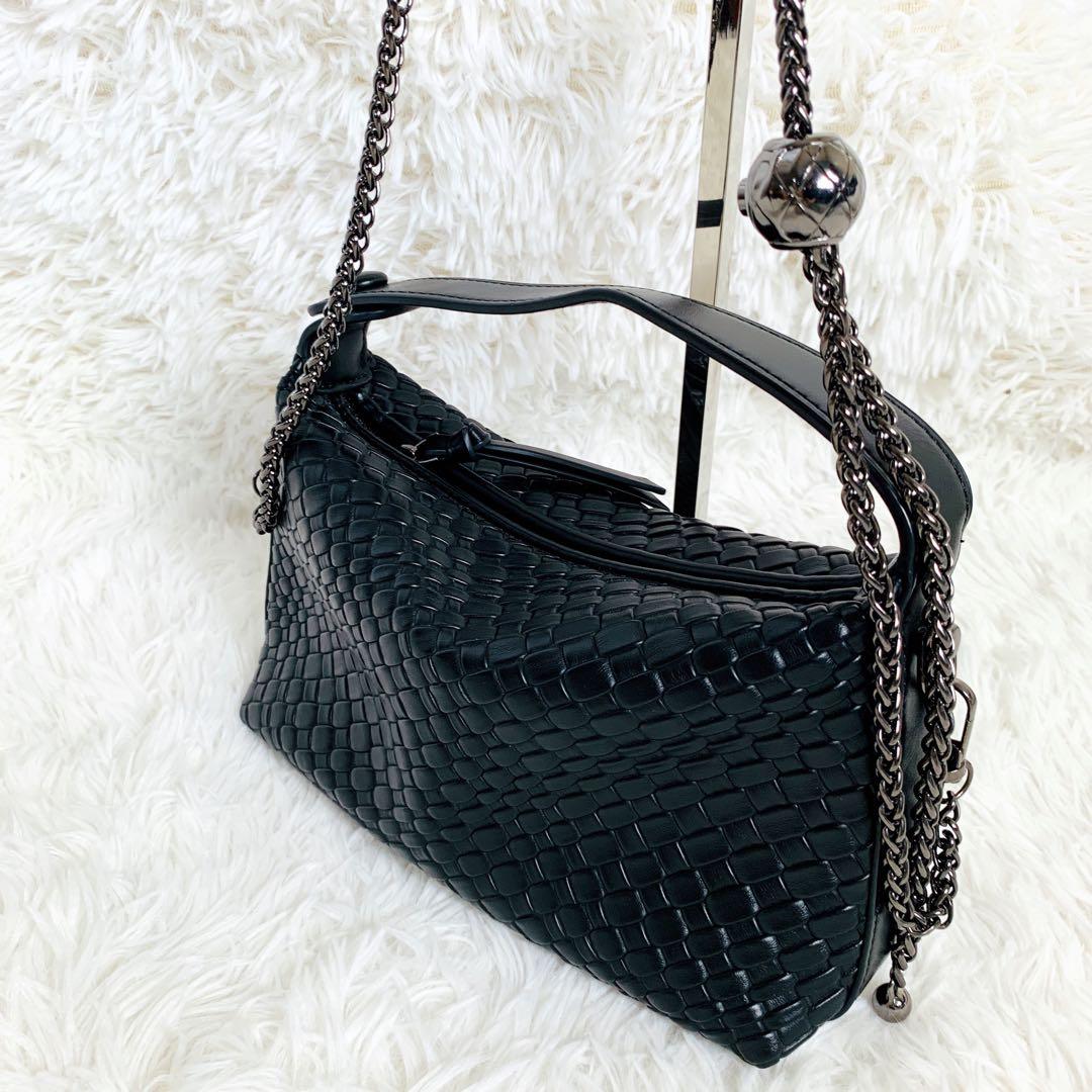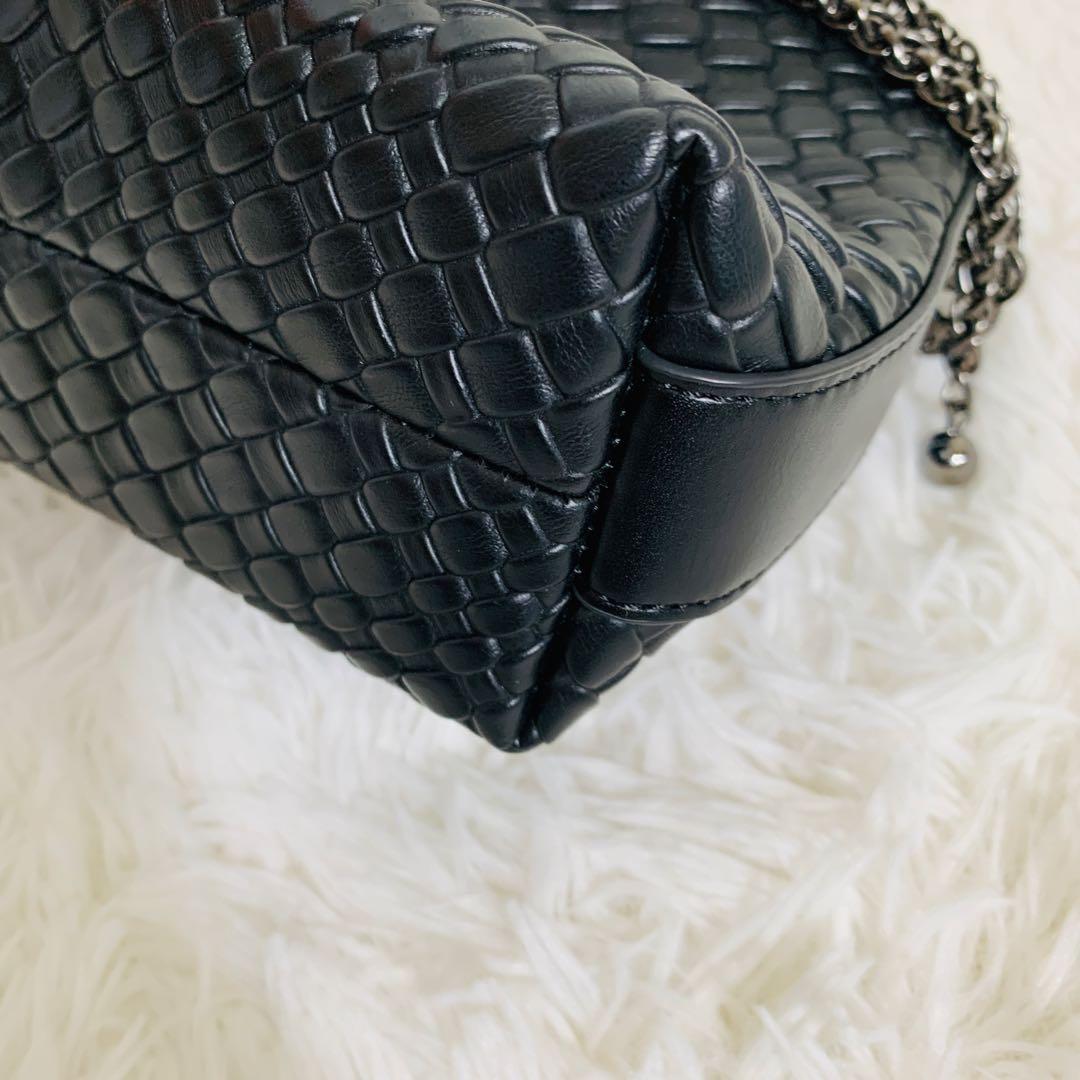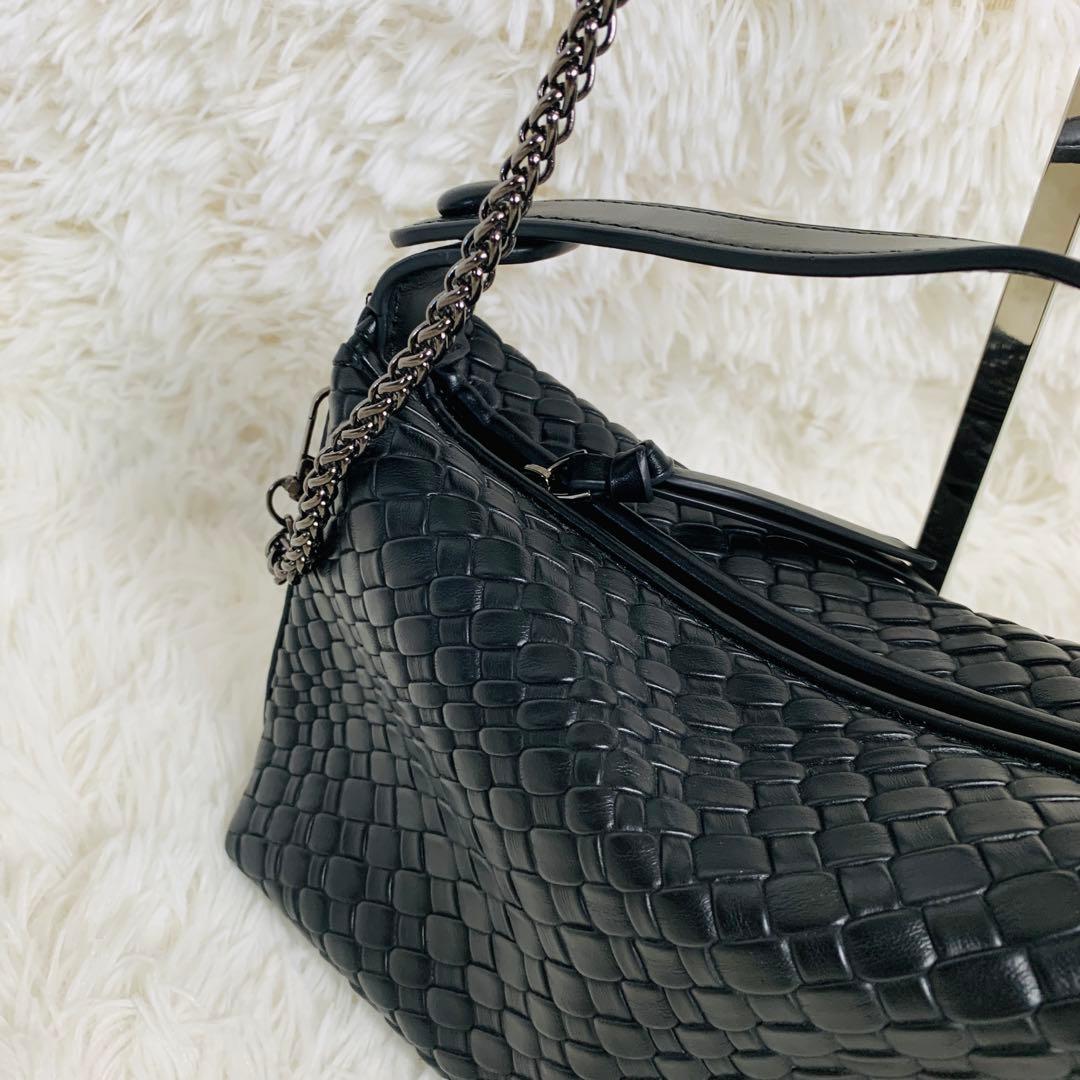【美品】編み込み 2wayショルダーバッグ イントレチャート ブラック