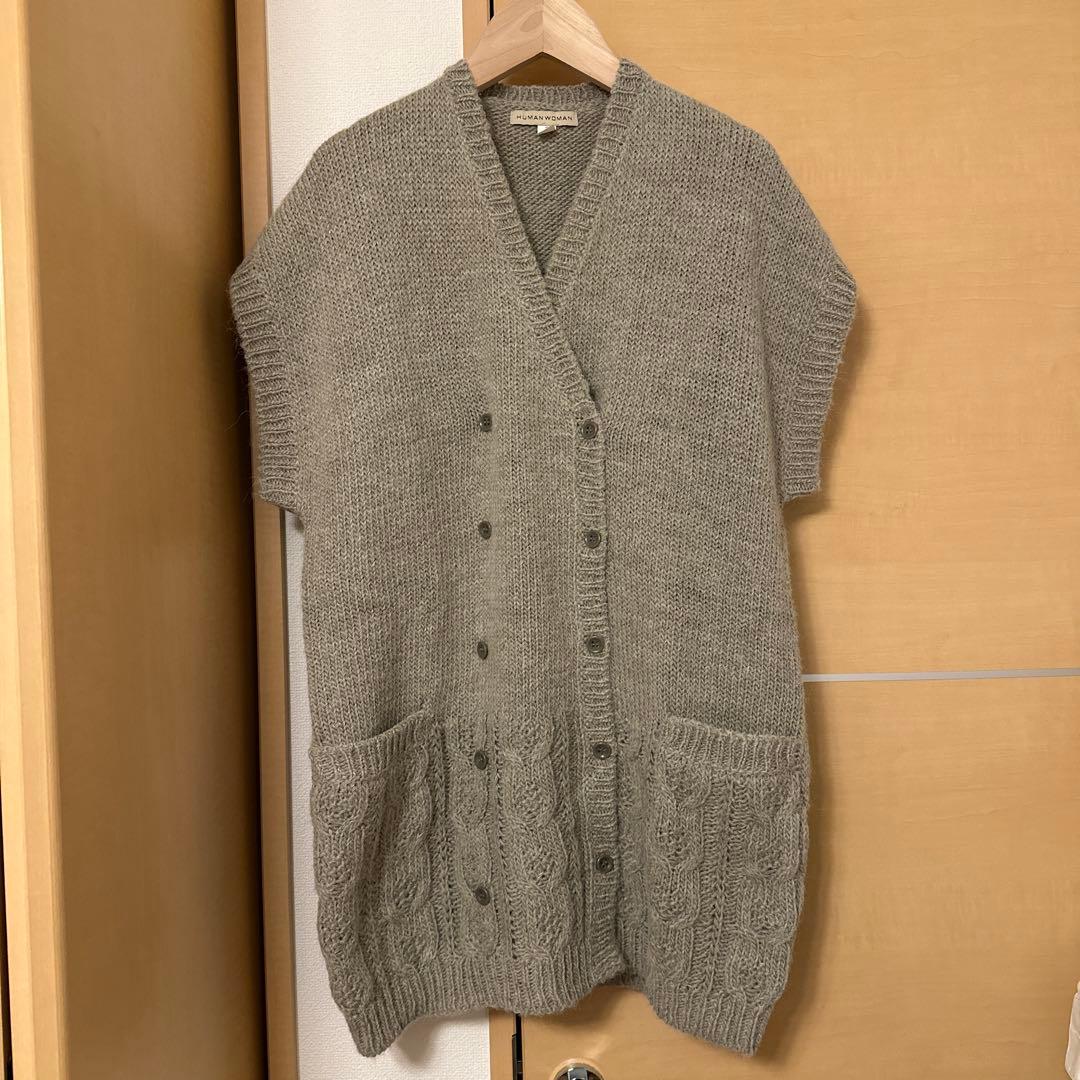 美品 HUMAN WOMAN ヒューマンウーマン 半袖アルパカニット グレー M