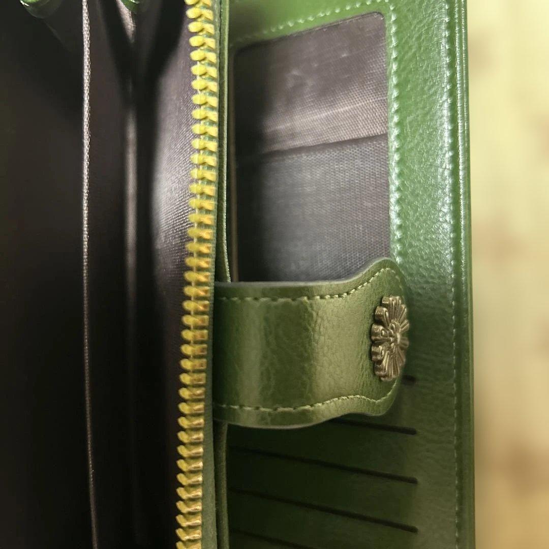 グリーン長財布穴あき装飾 中古 たっぷり多機能