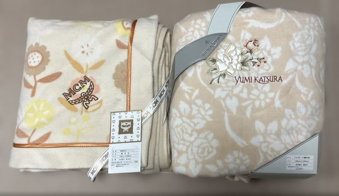 ピンク花柄 綿毛布 140x200cm MCM/桂由美 2枚セット 新品