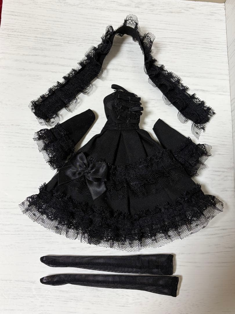 【匿名配送】ジェニー・オビツ27等に★レースとリボンのゴスロリドレス黒×黒レース