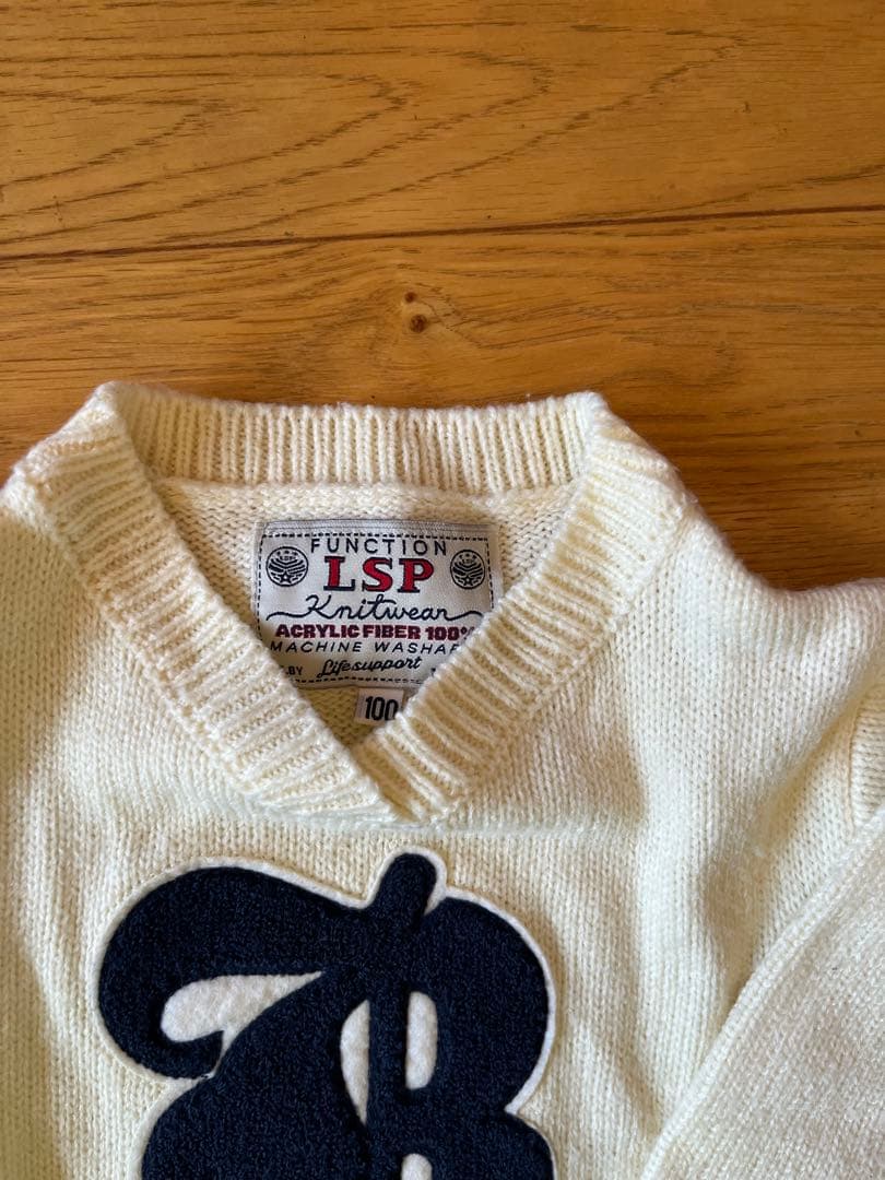 【マーキーズ、LSP】アイボリー ニットセーター Bマーク刺繍入り サイズ100