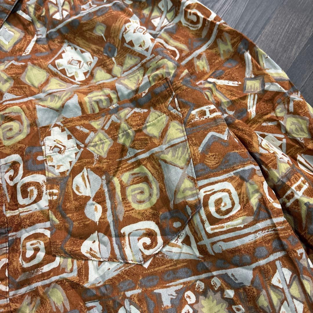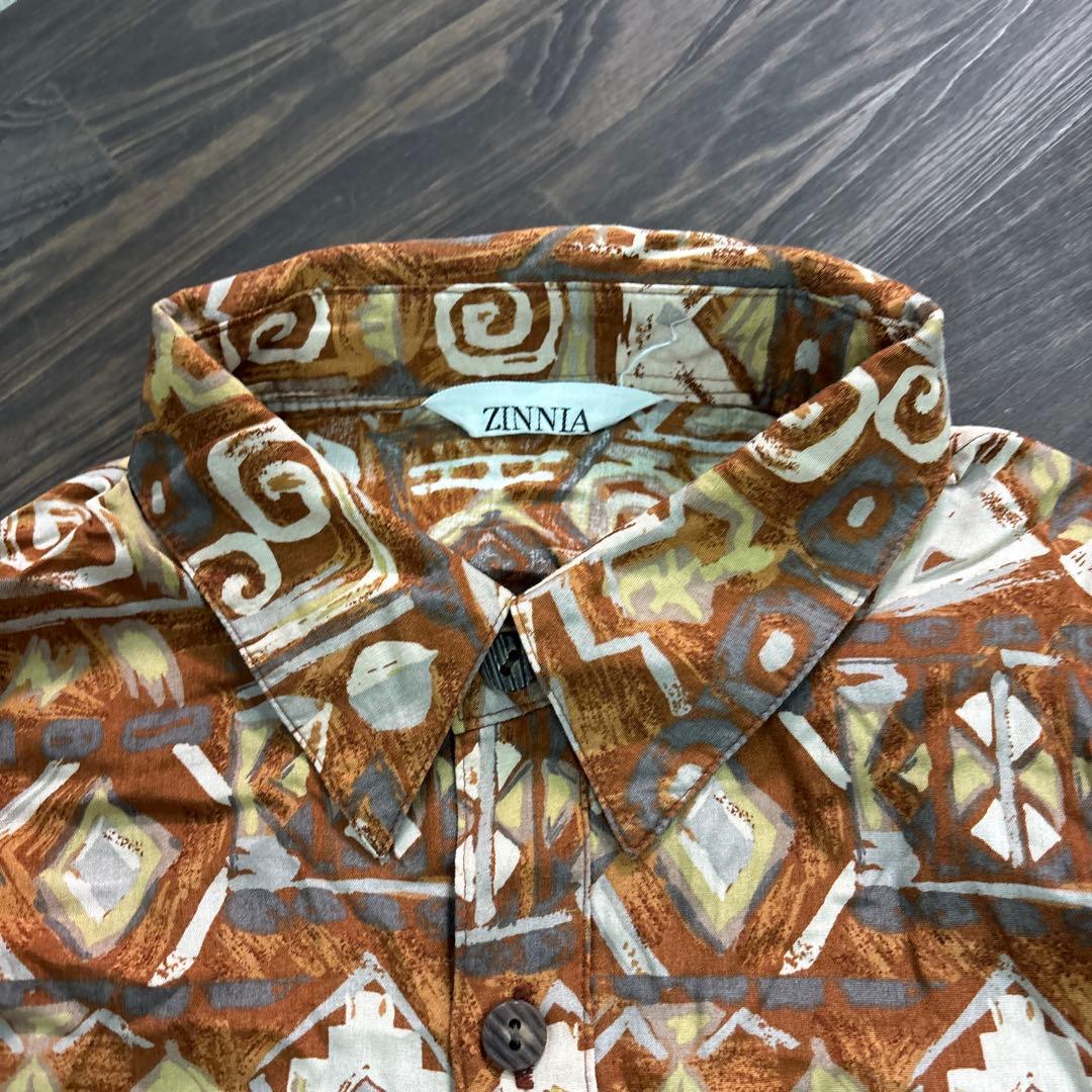 7BS3 日本製 総柄シャツ グランパコア 長袖 古着used