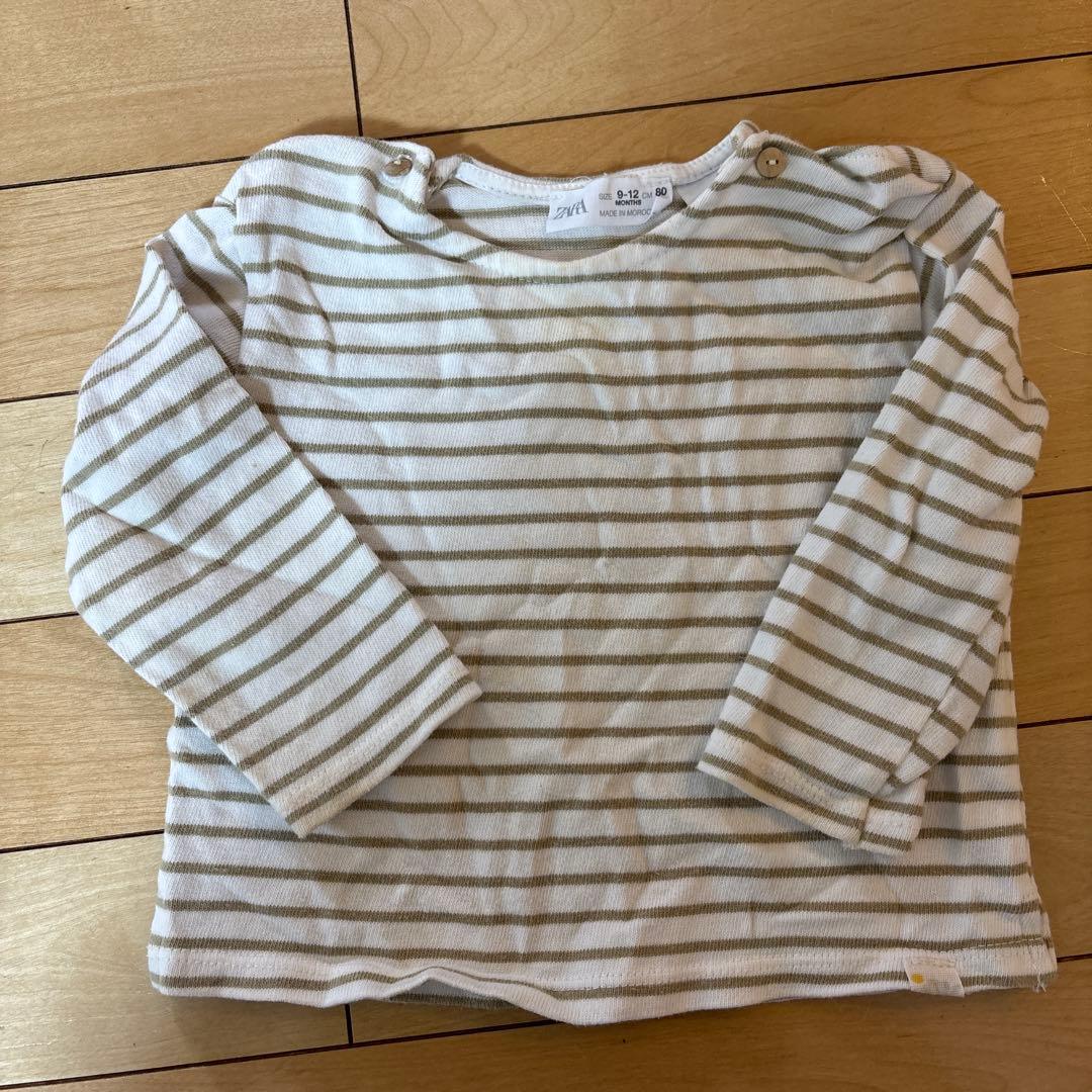 9-12ヶ月 ホワイト・ストライプ 長袖Tシャツ