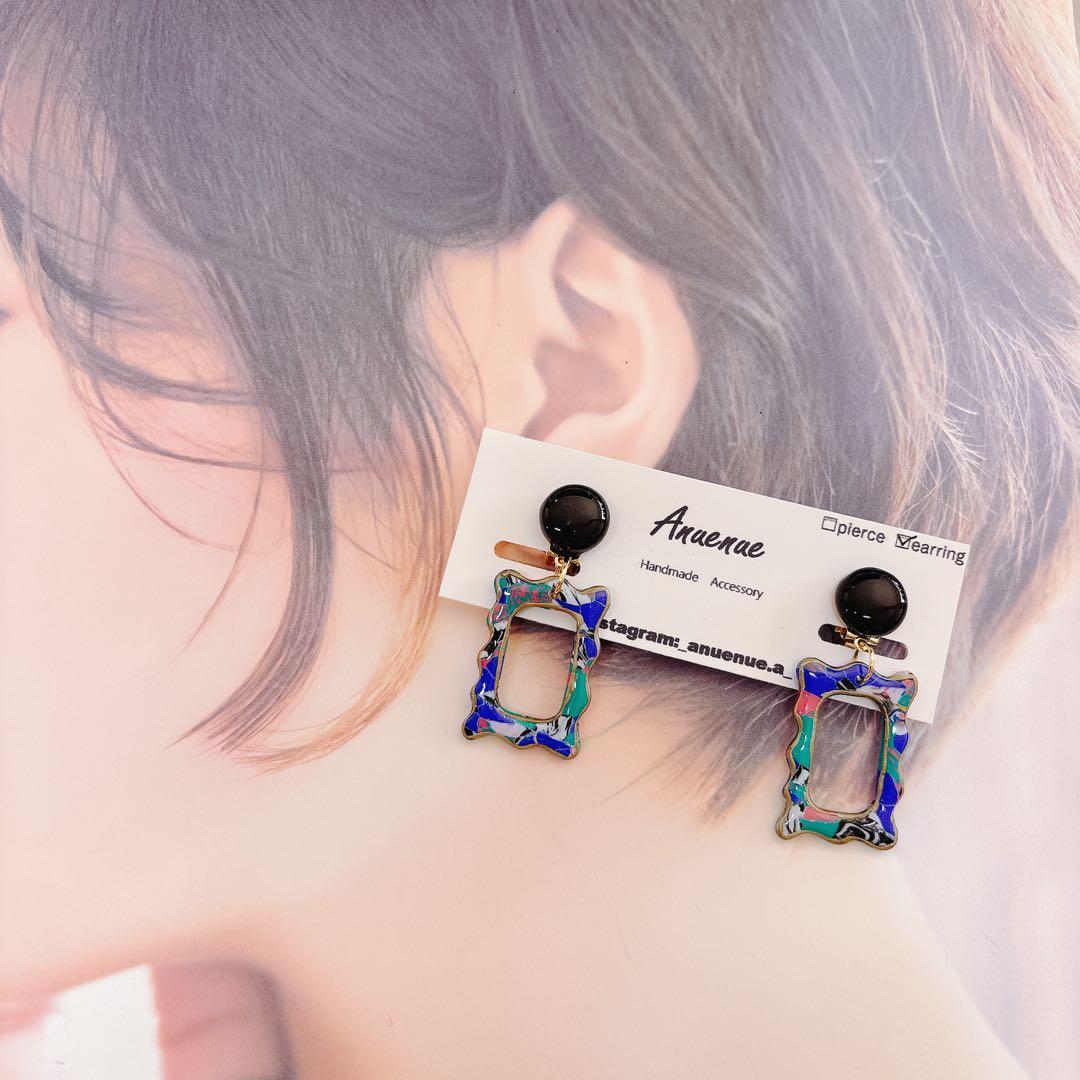 D91ブルー個性的イヤリング ポリマークレイ 可愛い 一点物 青 カラフル 派手