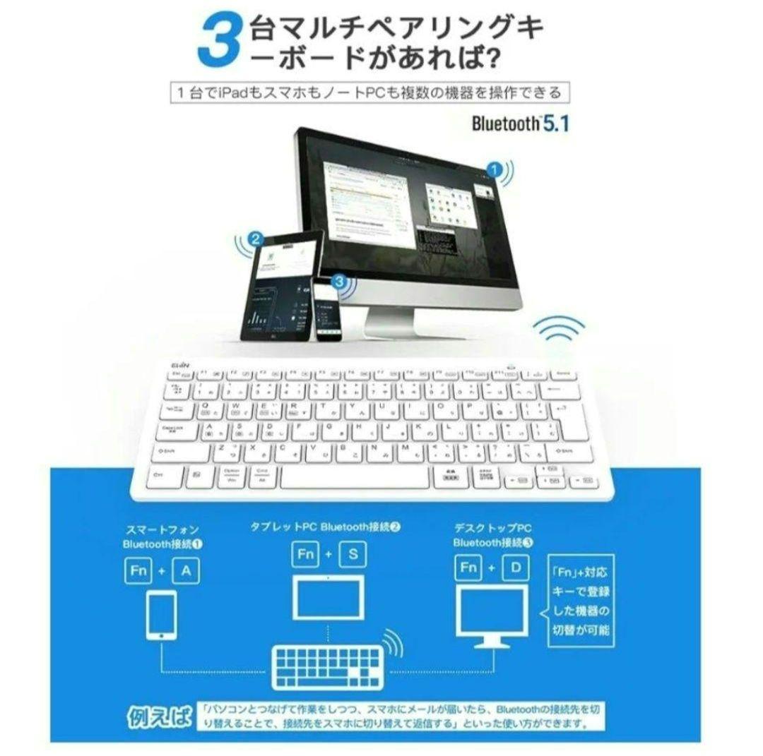 bluetooth キーボード ワイヤレス ホワイト スマホスタンド付き