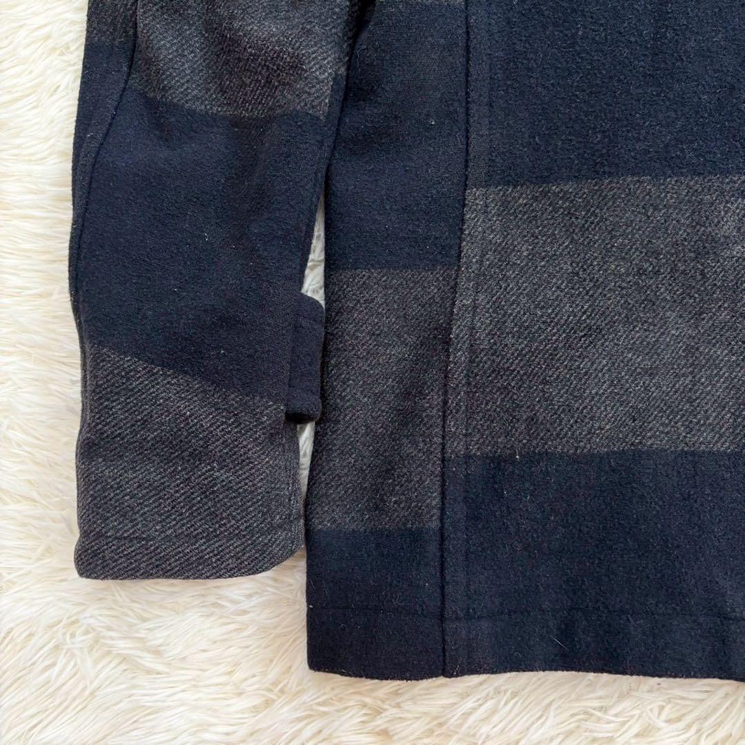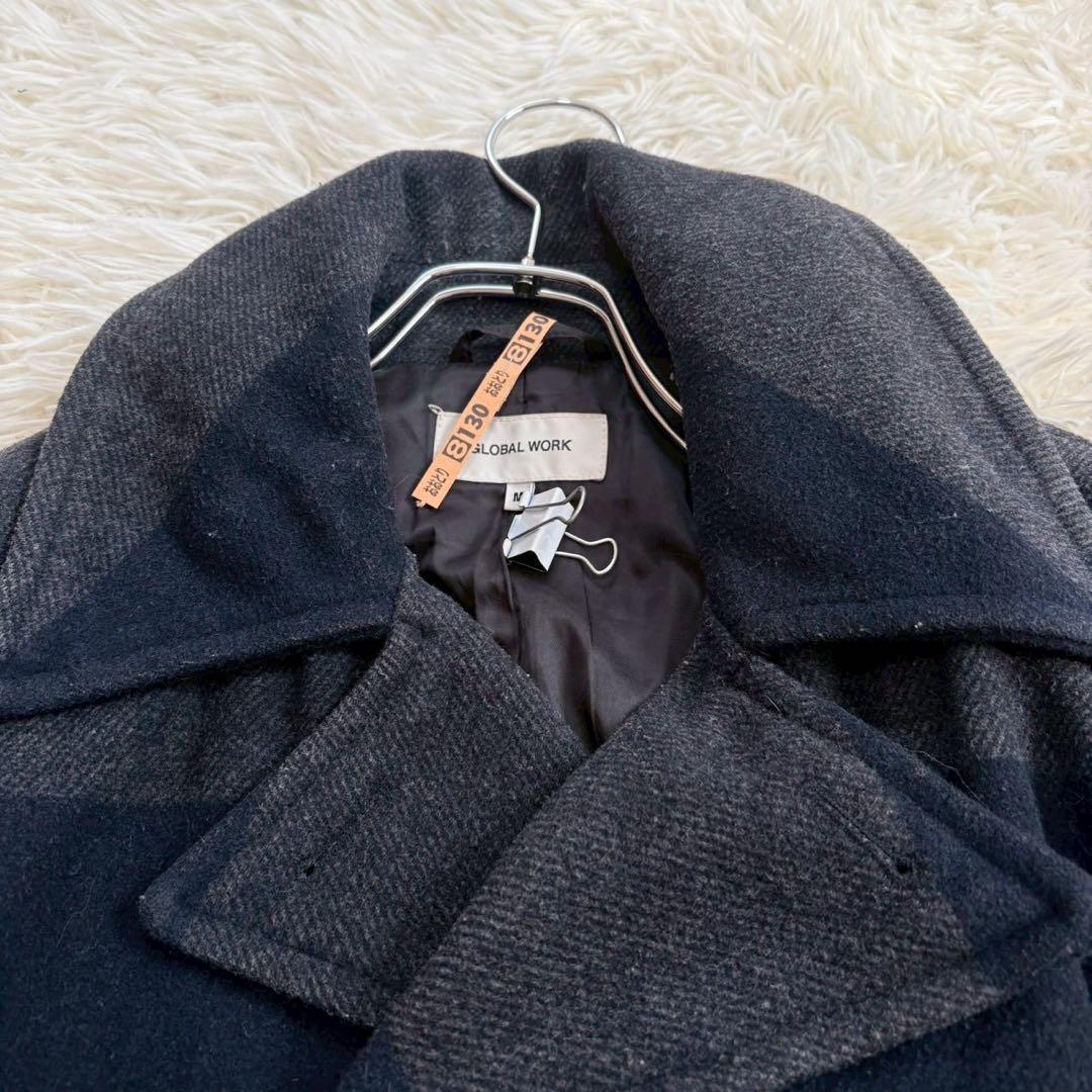 y7217 グローバルワーク ボーダー柄ピーコート メンズM ダークグレー 防寒