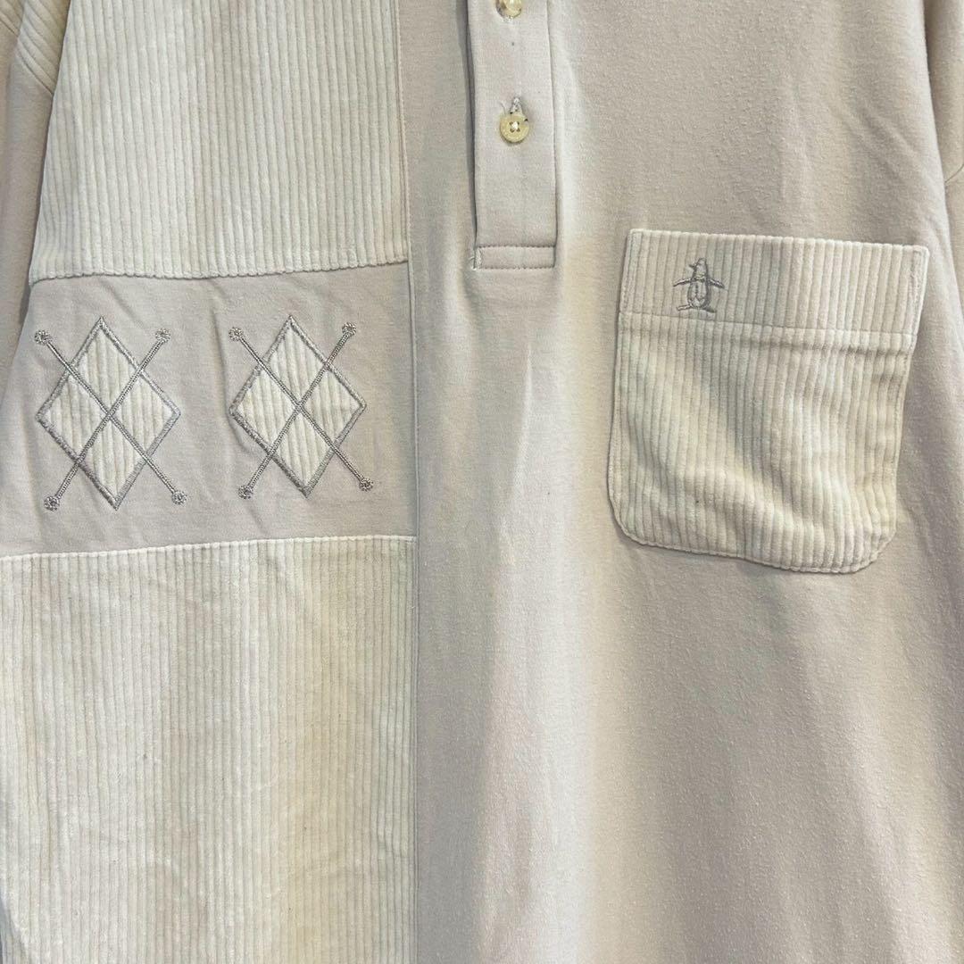 【マンシングウェア】ポロシャツ コーデュロイ異素材 長袖 刺繍ロゴ 綿100%L