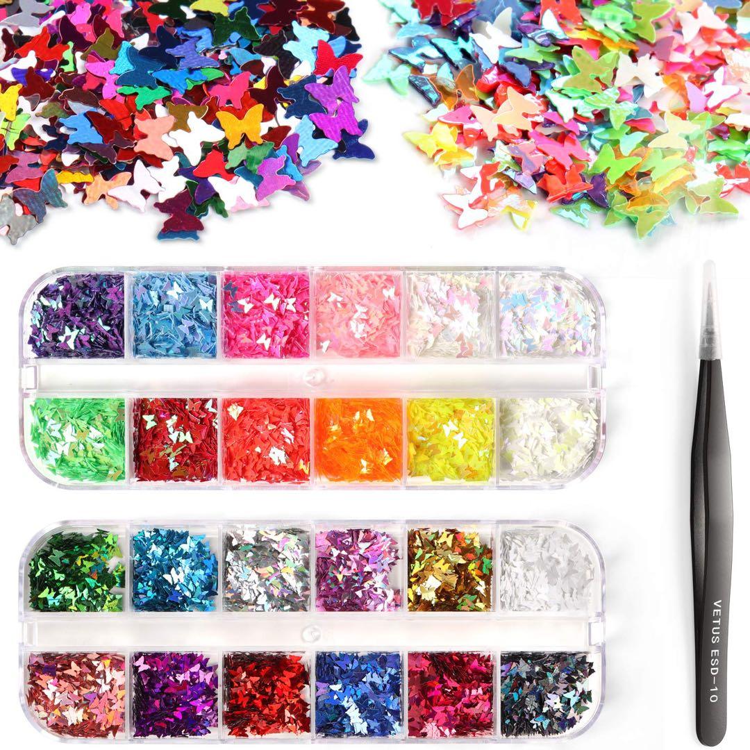 花信風 24色 極薄ネイルパーツ蝶 ネイル用シールステッカー ピンセット付き