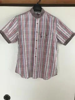 ブラックスタンドカラーシャツ 刺繍 中華 (ボタン1つ取れてます)