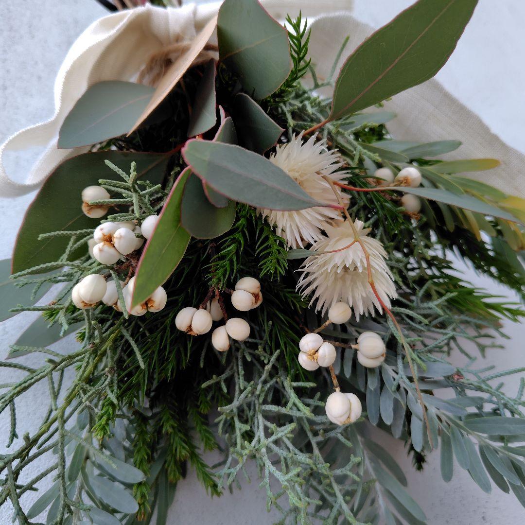 13.フレッシュグリーンとドライフラワーのクリスマススワッグ 30cm ユーカリ