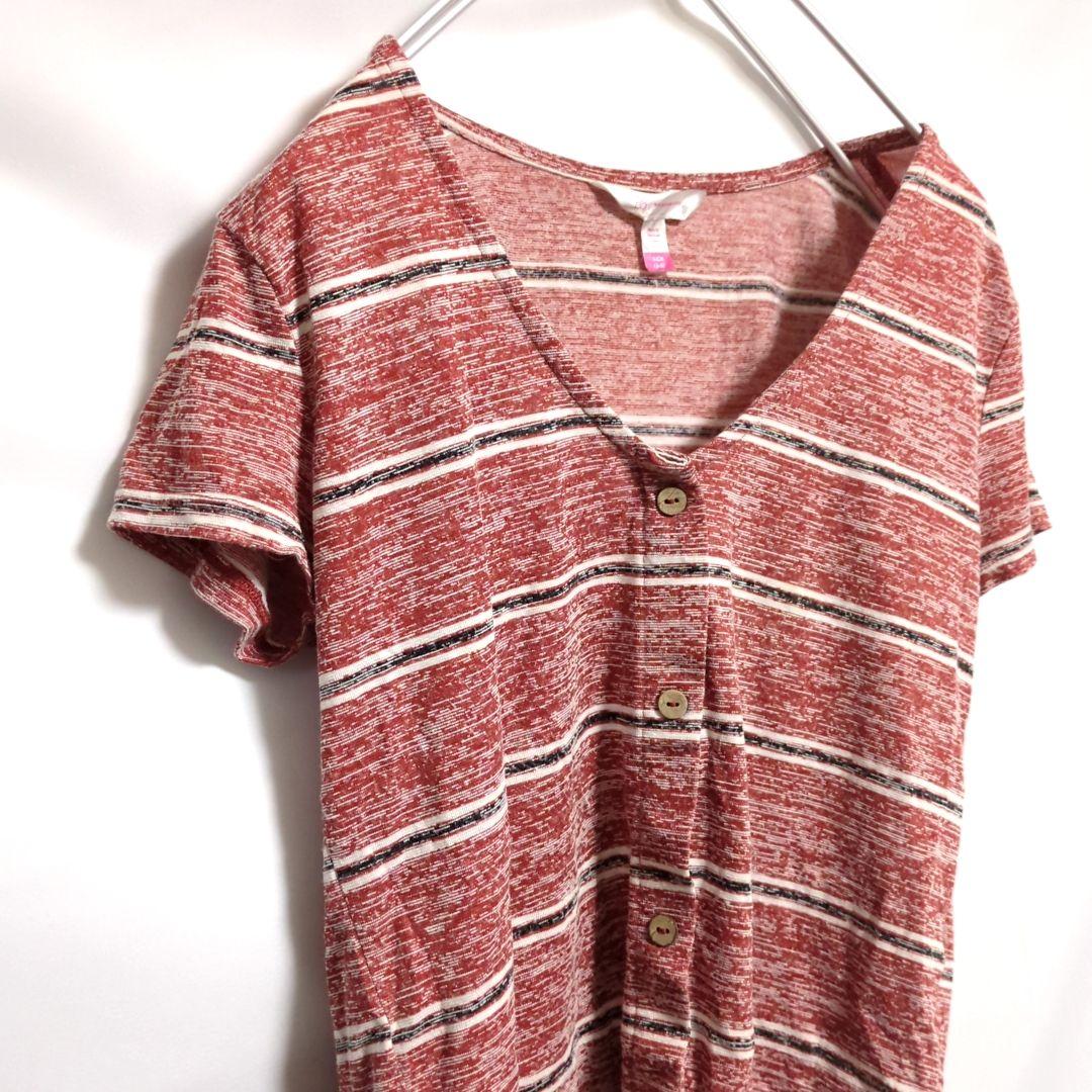 ★ノイボイ★ストライプ Vネック半袖トップス S 赤 海外 US古着