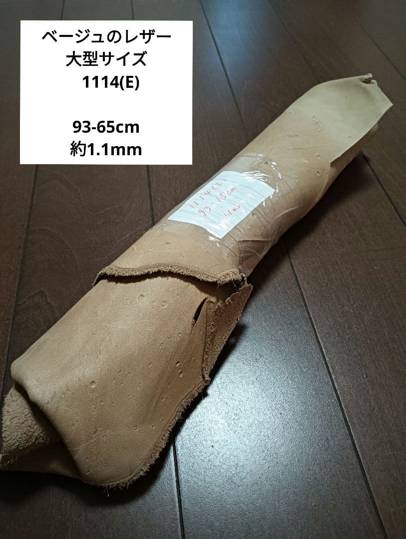 ベージュのレザー 大型サイズ革 皮 ハギレ 生地 素材 1114(E)