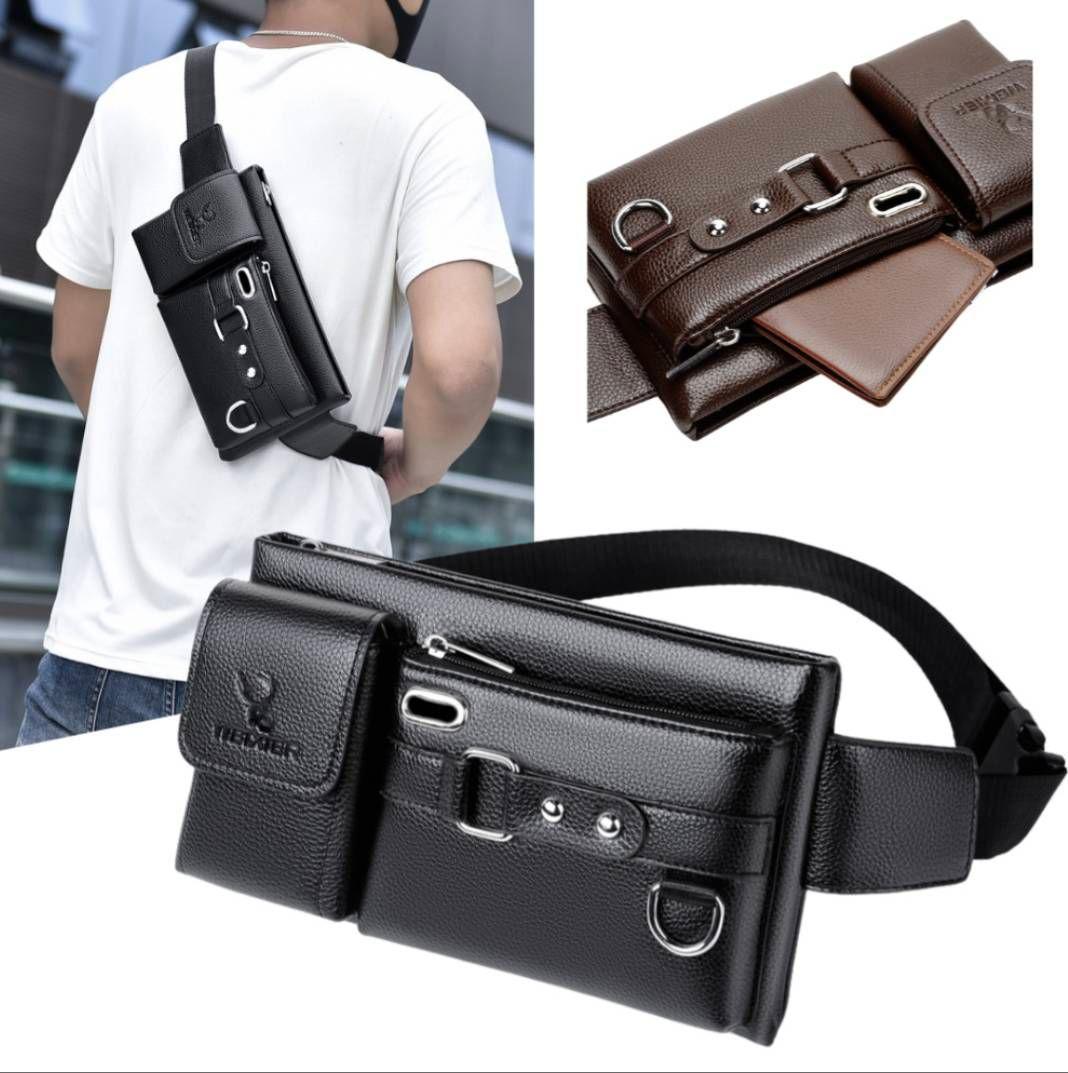 ボディバッグ、ウエストポーチ、ブラック多機能ポケット!