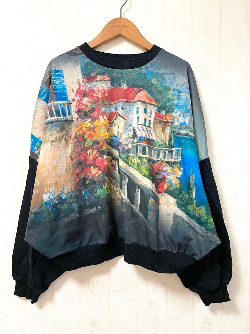 Desigual 風景画プリント オーバーサイズトレーナー L