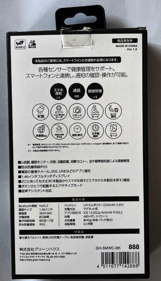 スマートウォッチ グリーンハウス GREEN HOUSE GH-SMWC-BK