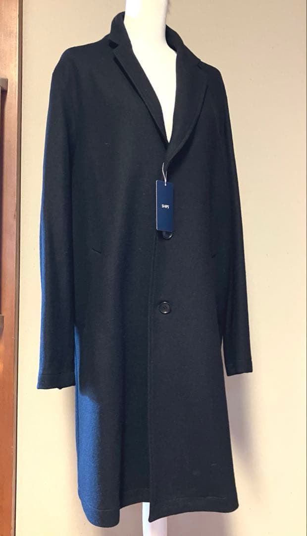 【新古品】シップス Ships woolフラノ風ロングコート BLACK XL
