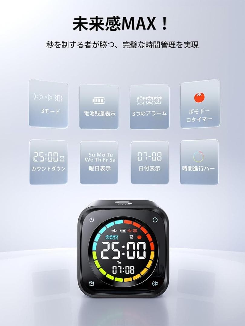 TickTimer ポモドーロタイマー 時計 アラーム 充電式 勉強 休憩 作業