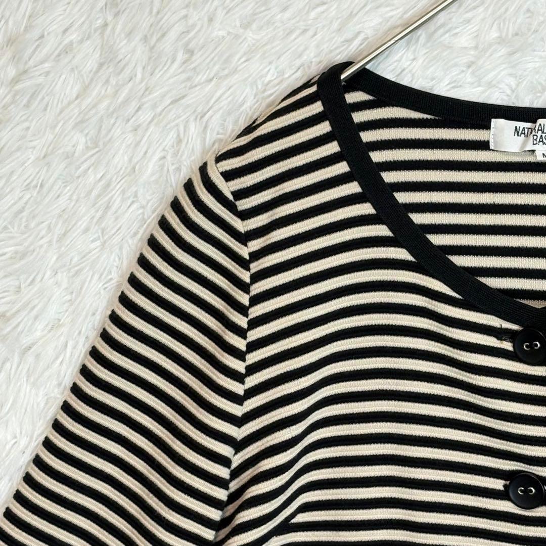 ナチュラルビューティベーシック/秋コーデ ボーダー柄ノーカラージャケット M