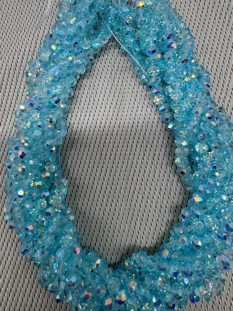 ガラスビーズ ボタンカット オパール風オーロラハーフ 4連6mm スカイブルー
