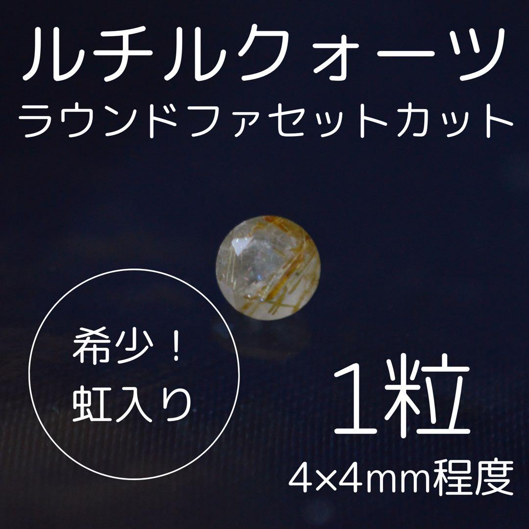 【希少!虹入り】ルチルクォーツ ラウンドファセットカット 4×4mm 1粒 天然