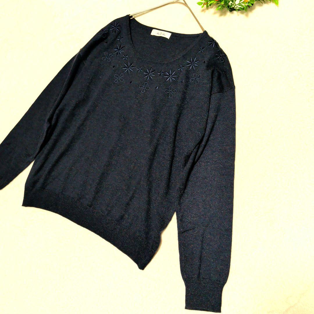 【美品】Rew de Rew ニットセーター 長袖 ネイビー 刺繍 M