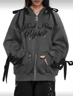 オーバーサイズロゴパーカー グレーブラック 地雷系 サブカル ギャル